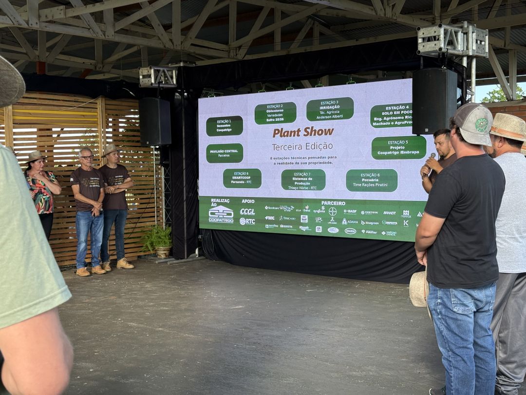 A terceira edição do Plant Show da Coopatrigo realizado no dia 18 se destacou pelo formato de apresentação, destacando vários pontos importantes para o associado conduzir a sua propriedade e principalmente enfrentar a situações adversas que vem ocorrendo, com uma sequência de frustrações na principal cultura, que é a soja. Abaixo em uma séria de fotos vamos registrar os vários momentos do Plant Show, agradecendo aos produtores associados que prestigiaram o evento.